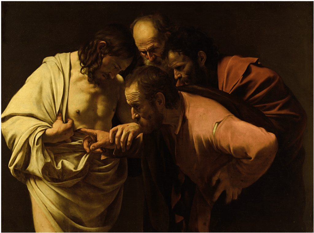 و بیش از هرچیز،کلاژهای فیلمساز و انتخابِ رنگها و نورپردازیِ صحنهها متاثر از آثار کاراواجو -نقاش بزرگِ دورانِ باروک ایتالیایی- است. صحنههای کلیدیِ ویدیو بازسازیِ تابلوی تازیانهزدنِ مسیح[۲]، خاکسپاریِ مسیح[۳] و ناباوریِ توماسِ قدیس[۴] با گذاشتنِ پیرمرد بالدار به جای مسیح بود، و حتی فیگور بالداریِ کاراکتر، اگرچه ماهیتا متاثر از شخصیتِ داستان مارکز است اما آشکارا برداشتی از نحوهی تصویرکشیدنِ کاراواجو در کارهایی شبیه به هفت عمل رحمت[۵] بود. و همچنین بازسازیِ شهادتِ سباستینِ قدیس[۶] که حتی شباهت در جای تیرها هم در آن رعایت شده بود.
