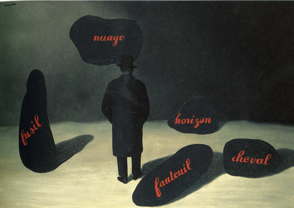 عکسِ کاور از آثار نخستین نقاشِ سورئالیستِ بزرگ بلژیکی، رنه مگریت است. با نام فرانسویِ L’Apparition یا به انگلیسی The Apparition؛ کمابیش به معنای ظهور. برای سالهای طولانی یکی از مشغولیاتِ فکریِ مگریت آشناییزدایی از پدیدهها بود، چه زبانی و چه تصویری. در تصاویرِ او، آبجکتها در جای خودشان نیستند و ارتباطی معنادار مابینِ کلمات و تصاویر نیست. پیروِ طرزفکری بود که معتقد است کلمات هیچ چیزِ منحصربفردی در خود ندارند، تنها قراردادهاییاند که ما به آنها خو کردهایم. کلماتِ داخل عکس: ابر، افق، اسب، صندلی و تفنگ.